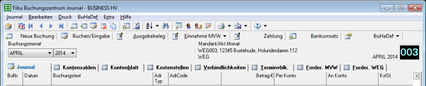Die Buchungszentrale - Journal und viele Verzweigungen in zugehörende Programmteile machen das Buchen fast zum Vergnügen