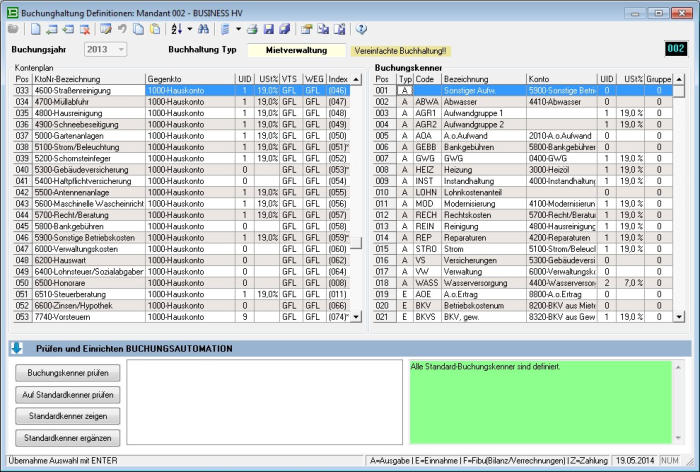 Buchungsdefinitionen - Kontenplan und Automation
