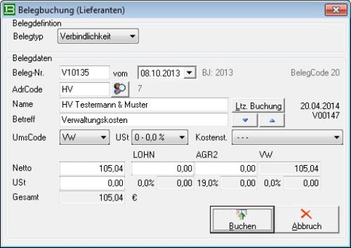 Buchungen von Eingangsrechnungen in der