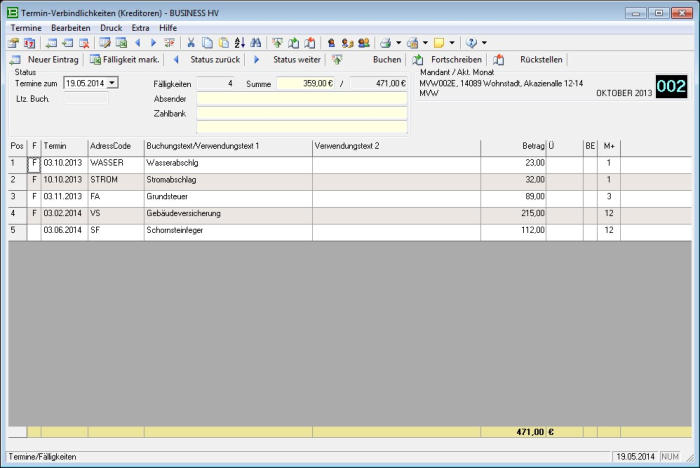 Wiederkehrende, terminierte Verbindlichkeiten - Abschlagszahlungen zu Strom, Wasser, Versicherungen, Steuern, Beiträgen - lassen sich
