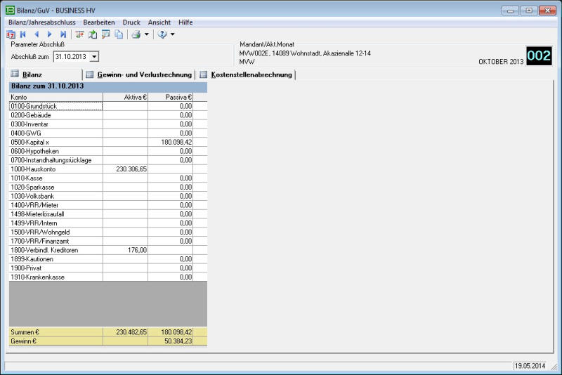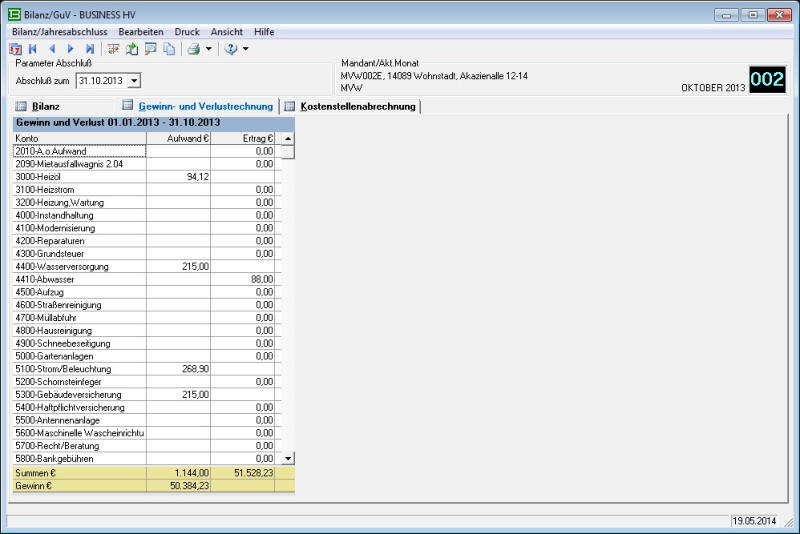 Jahresabschluss - mit Bilanz, Gewinn- und Verlustrechnung, Kostenstellenauswertung. Zentrales Instrument auch für Jahreswechsel und Jahrevortrag (wiederholbar!)
